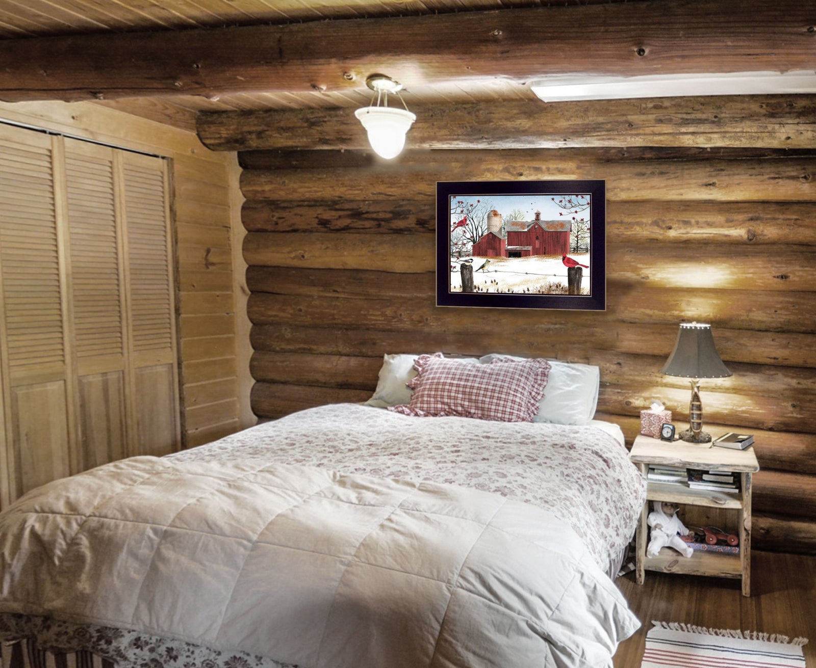 Farmstead, barn, fence ,cardinals, country house, star, farmhouse, Billy Jacobs, livingroom, room, family room, den , cave, framed art, art, wall decor, decor, artwork, poster, print, mdf, framed decor, framed poster |